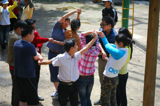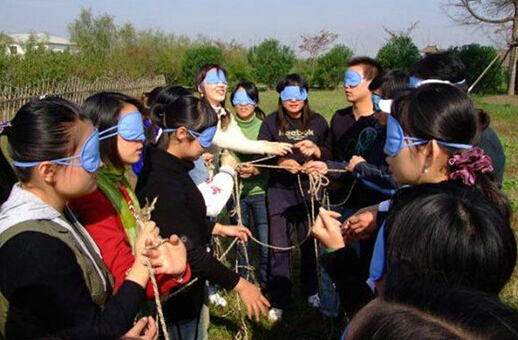 四.游戏规则:让所有队员被蒙上眼睛,在四十分钟内,将一根绳子拉成一个最大的正方形,并且所有队员都要均分在四条边上。这个项目教会所有学员如何在信息不充分的条件下寻找出路,大家耗用时间最长、最混乱、所有人最焦虑的时候是在领导人选出、方案确定之前,当领导人产生、有序的组织开始运转的时候,大家虽然未有胜算,但心底已坦然了许多。而行动方案得到大家的认同并推进,使学员们在同心协力中初尝着胜利的喜悦。